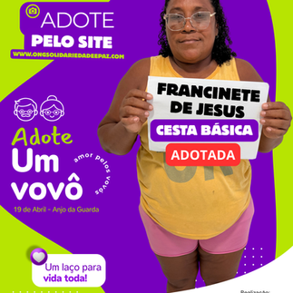 No dia 19 de abril iremos realizar a ação mais aguardada do ano, Adote um Vovô, que desta vez será realizada no bairro do Anjo da Guarda. Um gesto simples pode transformar o dia e vida de alguém.